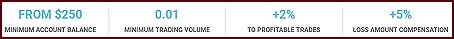 - The account balance must be equal or more than 250 USD (or its equivalent in another currency) as of the end date of the promotion.Otherwise, the request to get a loss compensation cannot be accepted.