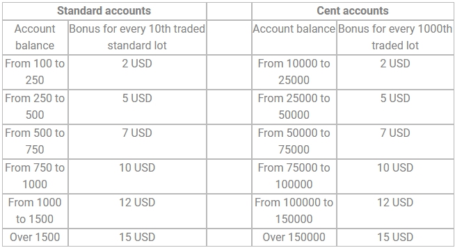- Bonus for every 10th traded standard lot